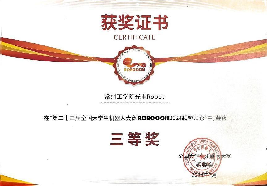 圖為常州工學(xué)院光電Robot團(tuán)隊的獲獎證書。常州工學(xué)院光電Robot團(tuán)隊 供圖