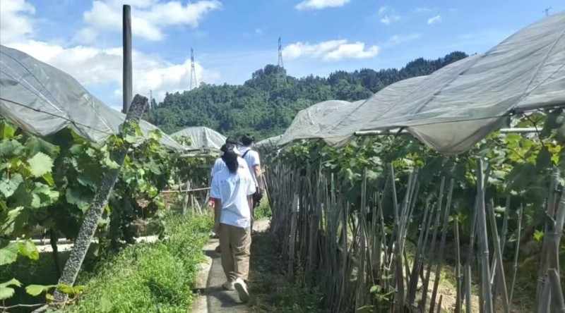 實踐隊在農業農村專干彭泊同志的帶領下,來到張排村葡萄種植基地,向當地農戶詳細了解了當地葡萄產業的產業規模,產品優勢,銷售渠道,經濟效益。
