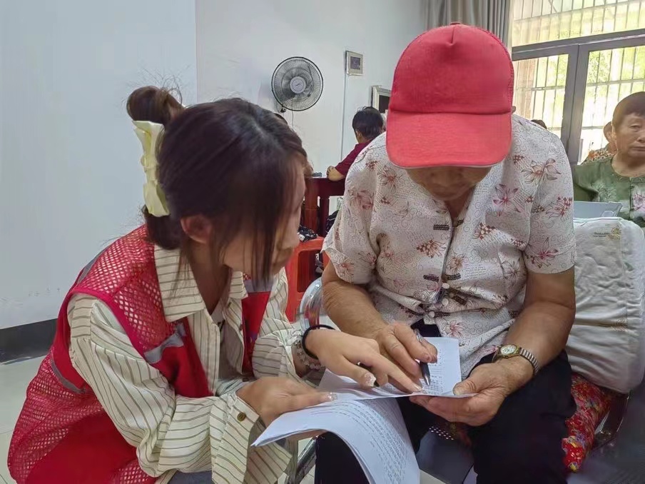 圖為志愿者對(duì)老人進(jìn)行慢性病宣傳 陳怡嫻攝