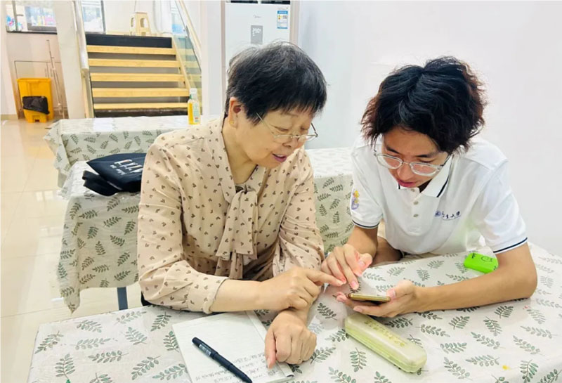 社區(qū)內(nèi)另一需要關(guān)注的群體是老人。聚焦如何讓科技之光照進銀齡日常的社會熱點,實踐隊組織開展“電子助老,關(guān)愛無限”活動。實踐隊隊長劉宣宣為老人們介紹了一些APP的常見使用問題,如自動續(xù)費關(guān)系,取消關(guān)注公眾號等,再由實踐隊成員一對一為老人們進行問題解答,希望幫助老人更好地融入數(shù)字化時代,享受現(xiàn)代科技所帶來的便利和樂趣。“這次活動不僅讓我們學(xué)會了許多實用的手機操作技巧,還讓我們感受到了來自社會的關(guān)愛與溫暖,這樣的活動太好了。”參與的老人給予了高度評價。