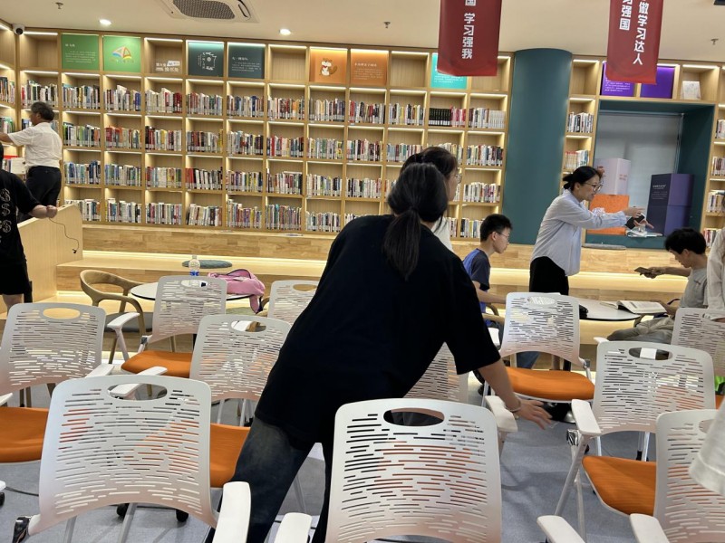 講座結束之后,成員們并沒有急著離開,而是選擇留下來,他們承擔起幫助收拾場地的任務。每個人都明確自己的分工,相互協作,將桌椅擺放得整整齊齊,恢復原位。他們清理垃圾,確保現場的每一處都保持干凈整潔。在他們的共同努力下,曙悅書房很快便恢復了原貌,仿佛從未經歷過一場熱鬧的講座一般。