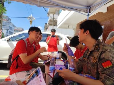 “入伍復學有多少補助?”“學生資助政策的好處在哪里?”……一些居民來到塘㙍鎮武裝部的宣傳攤位進行咨詢。突擊隊與塘㙍鎮人民黨委武裝部,聯合舉行征兵咨詢與學生資助政策宣傳活動。此外,突擊隊還輔以走動宣傳的方式,深入街巷實地調研,宣傳政策。