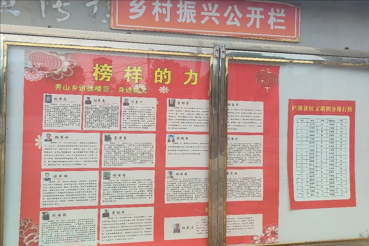 圖為欄壩社區(qū)的鄉(xiāng)村振興公開(kāi)欄。陳立麗 供圖