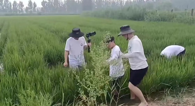 在高青黑牛之后同樣獲得口味認可的是高青縣常家鎮(zhèn)清水小龍蝦,于是第四站團隊去了小龍蝦的養(yǎng)殖地進行了觀摩,并下水進行了捕撈體驗,為其拍攝了宣傳視頻。養(yǎng)殖小龍蝦的池塘水質(zhì)清澈,與荷花共生,上蓮下蝦清香十足。