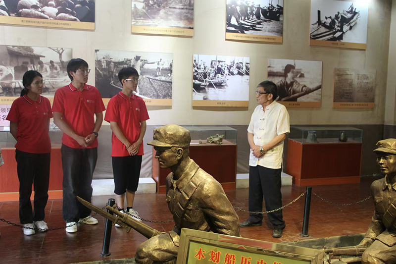 “解放軍和我們都是中華民族的一部分,都是一家人,他們不怕死,我們回族人民也不怕!”91歲的董玉發激動地說。當年作為一名年僅16歲的回民船工,董玉發義無反顧地投身到渡江戰役中,面對敵人的猛烈炮火,董玉發的下巴被子彈橫擦而過,鮮血染紅了衣衫,但他沒有選擇退縮,而是咬緊牙關,堅持駕駛著小船在波濤洶涌的長江上穿梭。當時他心中只有一個信念:無論遇到多大的困難和危險,都要把解放軍戰士送到對岸,為解放全中國貢獻自己的一份力量。聽完這段驚心動魄的歷史之后,隊員們心情久久不能平復,深切感受到如今我們所享有的和平幸福生活,是無數各族先輩用鮮血和生命拼搏出來的。