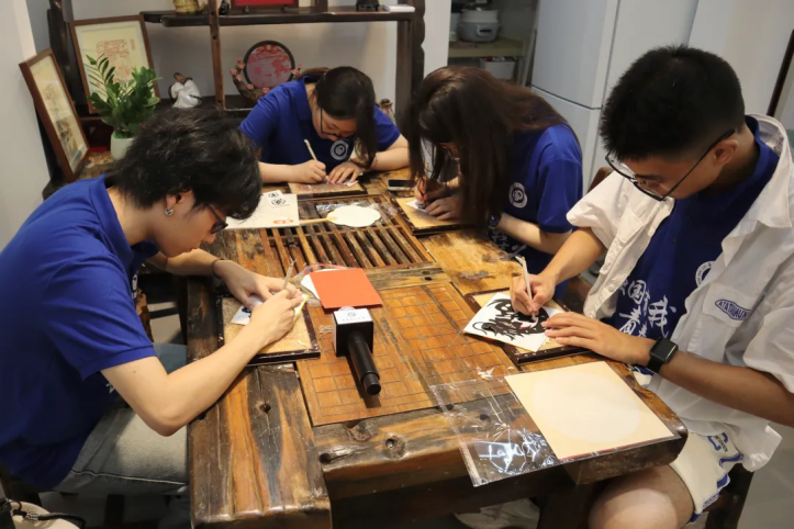 團隊成員前往陳永才剪紙藝術館進行參觀和體驗。佛山市級代表性傳承人陳嘉彥老師指出,佛山剪紙傳承的優勢在于相對容易推廣,但在快節奏社會下,佛山剪紙因需要時間積累沉淀而少有人選擇,實為一大痛點。陳老師還表示:“在如今這個強調創新創造的社會,佛山剪紙也必須要創新,否則也會被淘汰。”
