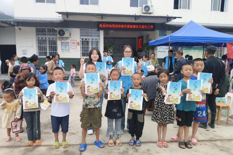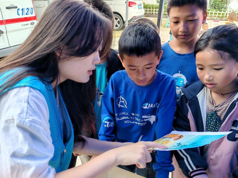 圖為志愿者向小朋友們進行鄉村振興海報宣傳及講解。通訊員 曲木伍加莫 供圖