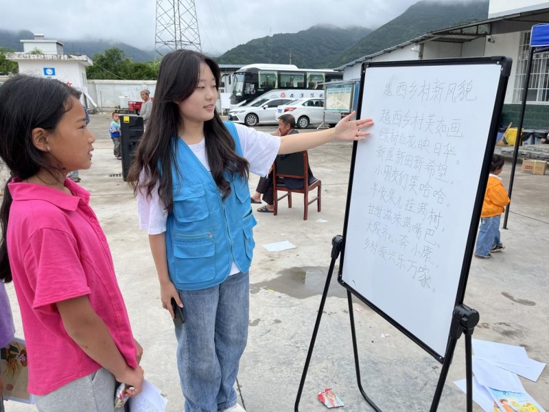 圖為志愿者向小朋友們進行鄉村振興詩歌的教學。通訊員 曲木伍加莫 供圖