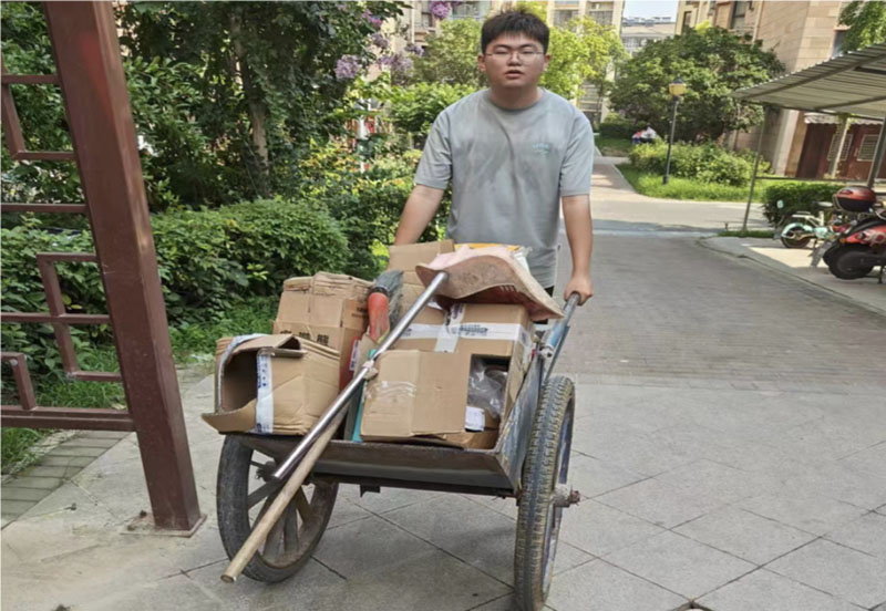 實踐團(tuán)成員肖鵬舉同學(xué)來到家鄉(xiāng)江蘇省淮安市,在國子家緣社區(qū)參加了以“攜手共建美好家園”為主題的志愿服務(wù)活動;顒赢(dāng)天,志愿者們分成多個小組,分別開展了環(huán)境清潔、綠化美化、公益宣傳、老人陪伴等多項志愿服務(wù)。他被分進(jìn)了環(huán)境清潔小組,在小組長的帶領(lǐng)下,志愿者們清理了社區(qū)內(nèi)的垃圾、雜草和廢棄物,使社區(qū)面貌煥然一新。