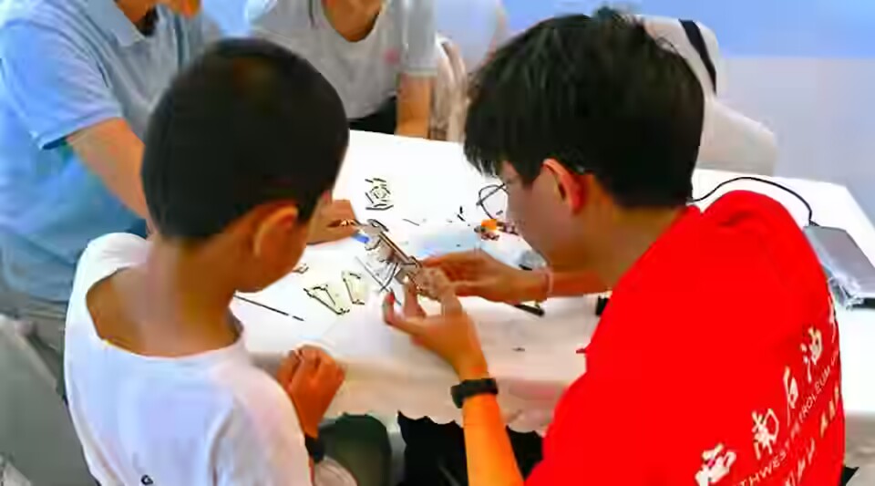 活動開始后,首先對觀眾進行簡單的分組,隨后由科幻模型制作以及遙控小車制作兩個團隊的兩位負責人分別向我們的觀眾朋友進行講解與制作教學,并對相關注意事項以及制作過程中可能會出現的安全問題進行著重強調。制作過程中,負責人負責指導觀眾正確使用工具進行制作,并對制作過程中觀眾提出的疑問以及出現的問題進行解答,最后成功完成科幻模型與遙控小車的制作。兩者的制作不僅充分考驗動手能力,而且與物理知識緊密結合,最終在一個個成果中點燃一顆顆科幻的心。