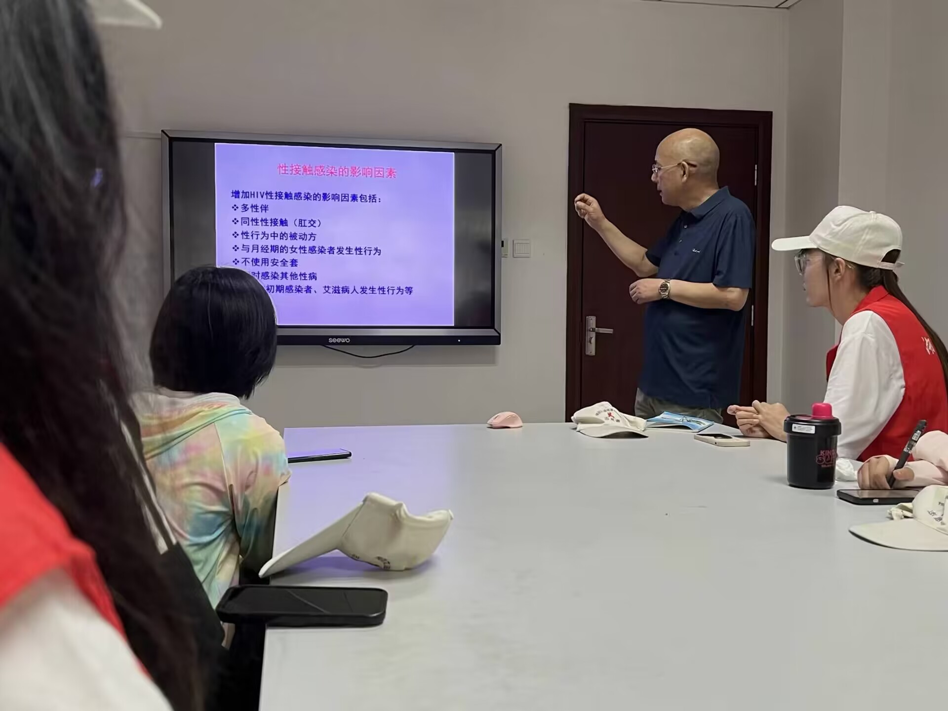 圖為疾控中心老師教導實踐隊防艾知識。馬駿雅 供圖
