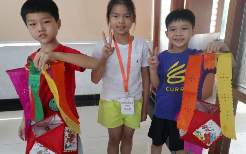 圖為孩子們展示他們制作的花燈 盧尜卉供圖