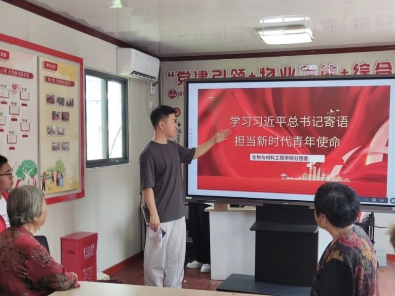 實踐團隊走進了宿遷市傅莊社區(qū)居民委員會,成員們與社區(qū)居民特別是青年朋友們進行了讀書分享會,一起閱讀《習近平與大學生朋友們》,觀看習近平總書記參觀北京大學的視頻,在視頻中,習近平總書記與大學生們的親切交談,無不透露出對青年的深切關愛和對青年成長成才的殷切期望。