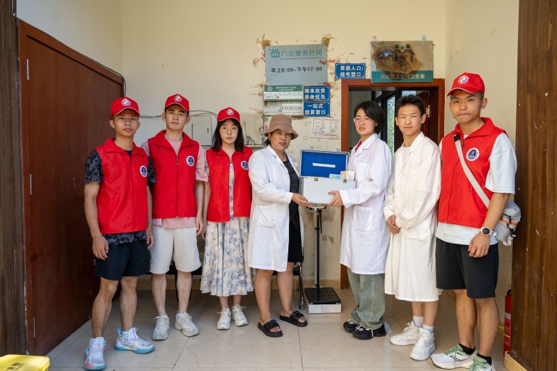 實踐隊向上鄉村衛生室捐贈藥物。陳東 供圖