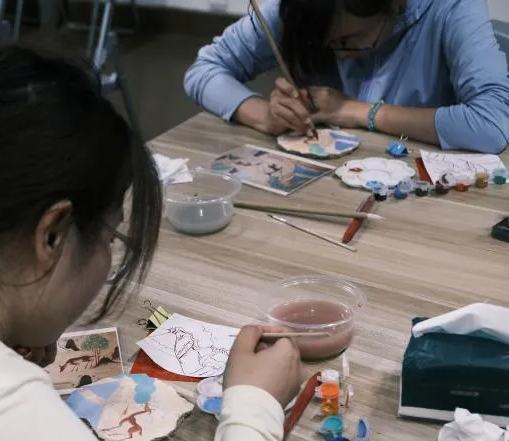 采訪藝術家,揭秘敦煌彩塑的韻味 吳未西東團隊走進敦煌莫高里工匠村,采訪傳承敦煌彩塑藝術的藝術家尤路平先生。在聽完尤路平先生對于彩塑藝術的原理及技巧的介紹之后,團隊成員親手體驗了傳統的石粉彩繪。五色雜陳的的仙禽、紅消綠冷的飛天、璀璨華麗的珠翠……那些靈動又輝煌的敦煌壁畫凝結了歷史瞬間的永恒影像。在莫高里工匠村,團隊成員親身體驗石粉彩繪,拓印下莫高窟內壁畫的一角,追尋從未消逝的匠心。制作過程中,工作人員詳細講解了石粉的來源、調配方法以及如何將其運用到壁畫繪制與敦煌彩塑中。臨摹壁畫的過程中,成員們似乎感受到了歷史的厚重與藝術的靈動,在壁畫的復刻中,體會敦煌文化千年不朽的蓬勃生命力:“那一瞬間,仿佛是在與古老的壁畫對話。”