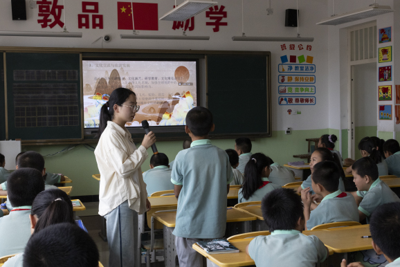 圖為吳未西東團隊在敦煌市第五小學授課。王媛媛 供圖