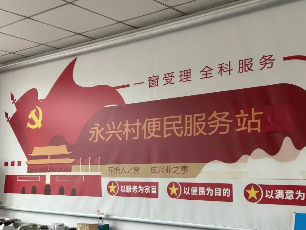 圖為永興村便民服務站正面照。徐康婷 攝 接著,實踐隊員們來到了永興村便民服務站。為了更好地利企便民,永興村便民服務站堅持“以服務為宗旨,以便民為目的,以滿意為標準”的態(tài)度,不斷增強群眾的獲得感、滿足感和幸福感。永興村便民服務站以黨建為中心,設置黨史宣傳欄,陳列反映黨建歷史的相關資料。同時,便民服務站還提供地方文化、科技金融、生活健康等內容的各類圖書,供群眾閱讀學習。
