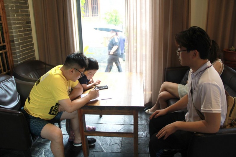圖為團隊成員向游客開展調查。 黃彥 供圖