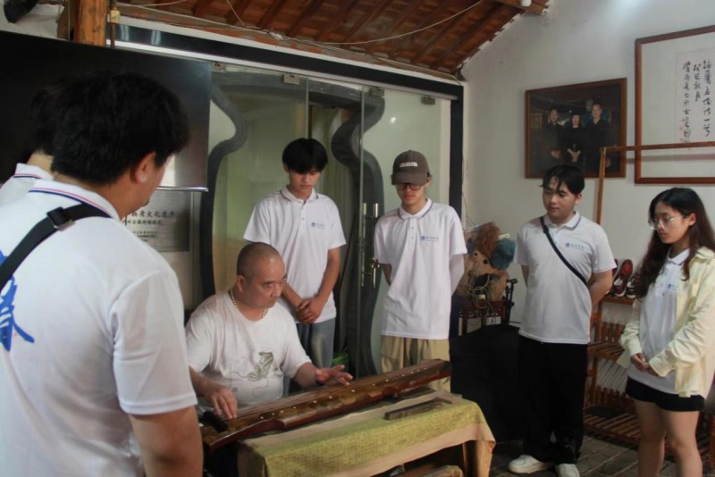 圖為觀察團同朱志剛老師學習廬州古琴彈奏技巧。 黃彥 供圖