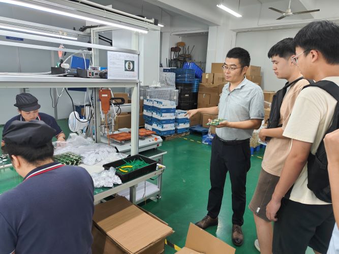 在實踐的最后階段,我們隊前往位于廈門市海滄區的廈門卓普電子科技有限公司前往參觀,并與其工作人員交流相關技術與工業知識,了解了當代廈門本地的相關科技產業的發展現狀以及行業生產模式,將我們所學專業知識與實際生產過程相結合,加深專業知識的理解,學習相關知識在生產方面的實際應用。