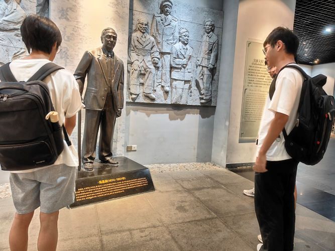 隨后我們實踐隊又前往陳嘉庚紀念館與集美學村開展實地參訪調研,陳嘉庚紀念館中詳細介紹了陳嘉庚先生的生平事跡,參觀當日我們隊隨館內的講解人員循著館內參觀導覽,從陳嘉庚先生創業之初,到回國開辦廈門大學,集美大學,聯合國內外華人華僑共同支援國內抗戰,以及與陳嘉庚先生相關的名人歷史等史料詳細的表達給每一位參觀人員,陳嘉庚先生將一生財富和精力都無私奉獻給了國家的復興,教育的進步,他的精神感動了無數人使我們深刻體悟到了“國家之富強,全在于國民,國民之發展,全在于教育,教育是立國之本”的不泯信念。而集美學村正是集美大學所在地,該地以集美大學為中心,產生了由幾所高校組成的集美學村,同樣也是體現陳嘉庚先生創辦學校促進教育事業發展的地方。