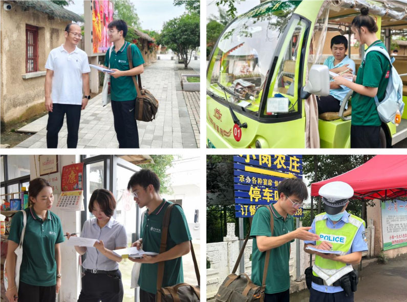 為獲取第一手資料,實踐團針對小崗村設計了詳細的調查問卷,走訪了小崗村的村民、學生、教師、交警、游客等多元群體,溝通了解小崗村體育設施與體育活動的情況、需求、建議與期望。探訪學校,共同交流鄉村學校體育教育的現狀以及發展,細致考察了村內的籃球場、健身區等體育設施……從田間地頭到村民家中,實踐團留下了四處奔走調研的身影。