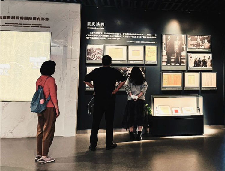 整個展館主要分為六個板塊,分別是“為了和平,進行重慶談判”“進駐梅園,開啟南京續談”“審時度勢,力控嚴峻局勢”“擴大統戰,開辟第二條戰線”“竭力奔走,各方斡旋調解”和“抵制‘國大’,中共贏得人心”。團隊成員順著標語指示的順序依次進行了參觀,千余件珍貴實物、歷史檔案資料以及舊時影像照片,向團隊成員生動展示了這一段深刻的歷史:南京談判是國共重慶談判的繼續,在1946年5月至1947年3月這長達10個月的談判中,兩黨在中原解放區的國共沖突問題、東北休戰問題、黃河堵口問題以及對解放區救濟物資的爭取等問題上進行了協商。