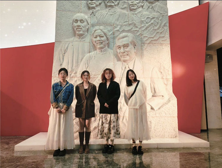 從周恩來的銅像到一樓展廳正中間雕刻著中央代表團領導成員和部分工作人員的大型漢白玉浮雕,再到生動展現了中國共產黨在南京的革命歷程和奮斗精神的文物和照片,團隊成員們懷著敬畏心境參觀完了這座以慶祝中國共產黨在南京建立的歷史為主題的紀念館。