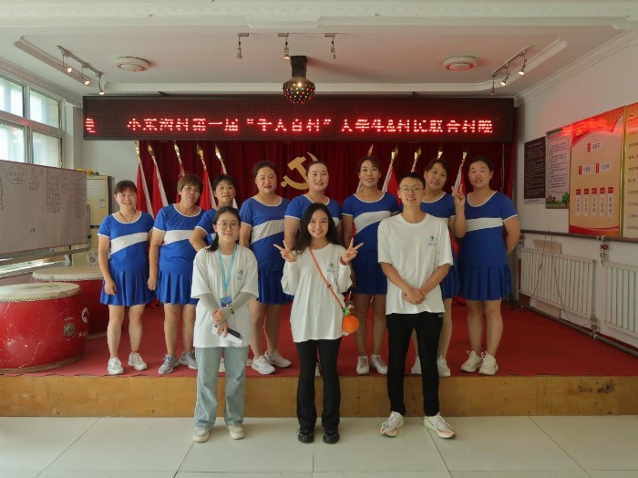 在收獲頗豐的調研之余,團隊在鎮政府的帶領下共同前往“桃花大舞臺”,感受村晚魅力,并與其他實踐團隊一道在小東溝村組織、策劃、排練和演出,與村民合演共創“小東溝村第一屆‘千人百村’大學生&村民聯合村晚”。
