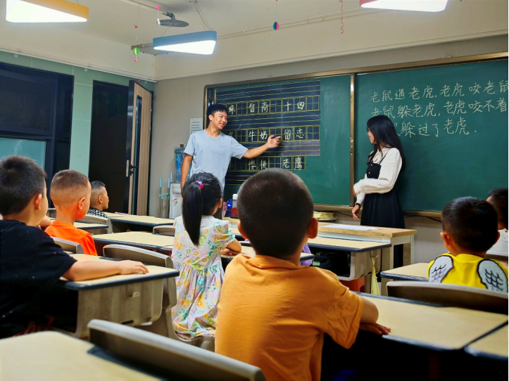 圖為實踐團隊為孩子們普及普通話。 吳文靜供圖