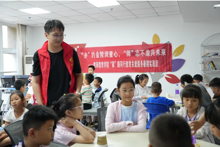 在授課的過程中,服務(wù)團(tuán)成員們也經(jīng)歷了一次心靈的洗禮。他們深刻體會到了教育的力量,感受到了作為教師的責(zé)任和使命,每一次與孩子們的互動,每一次看到孩子們眼中閃爍的光芒,都讓他們更加堅定了投身教育事業(yè)的決心。隨著實踐活動的結(jié)束,團(tuán)隊成員們帶著滿滿的收獲和深刻的感悟,回到了校園。但他們在社區(qū)播下的種子,已經(jīng)在孩子們心中生根發(fā)芽。相信在不久的將來,這些種子將長成參天大樹,結(jié)出豐碩的果實。南京師范大學(xué)教師教育學(xué)院的“驛”路同行教育關(guān)愛服務(wù)團(tuán),將繼續(xù)肩負(fù)起培養(yǎng)新時代青少年的使命,為孩子們的成長和成才貢獻(xiàn)自己的力量。