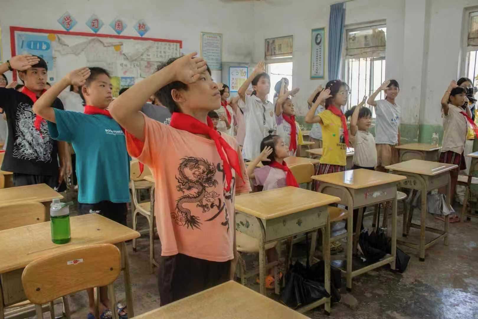下午最后一節(jié)課,教學(xué)部孫健豪為孩子們帶來了愛國主題教育課。他首先介紹了中國少年先鋒隊的創(chuàng)立過程以及紅領(lǐng)巾的象征意義,讓孩子們對少先隊有了更深刻的認識。隨后,他通過生動的講解和演示教孩子們學(xué)會了隊禮的正確姿勢并感受了作為少先隊員的榮譽與責(zé)任。當(dāng)《我們是共產(chǎn)主義接班人》的隊歌響起時,全體師生齊聲高唱激昂的歌聲回蕩在整個校園。孫老師還分享了自己的入伍經(jīng)歷用親身經(jīng)歷激發(fā)了孩子們對國家和軍隊的熱愛與向往。