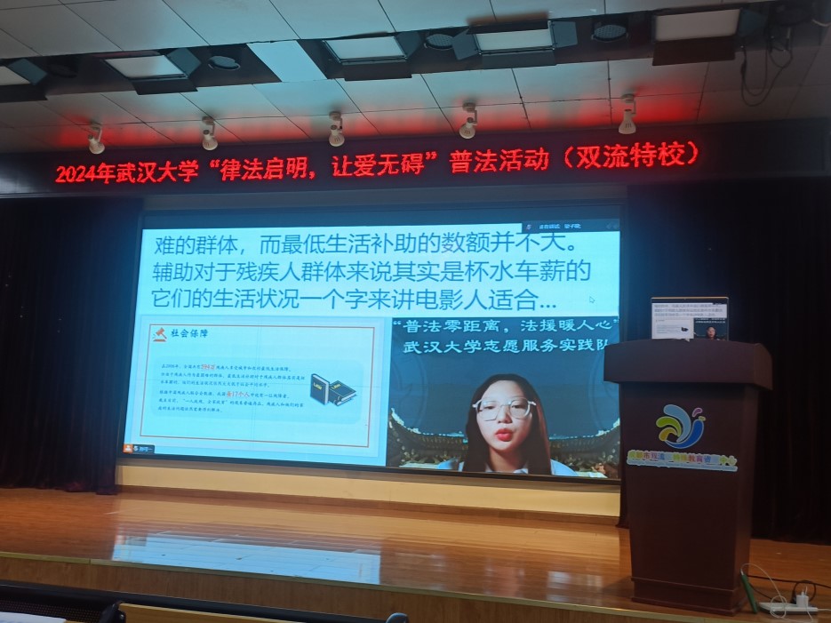 二、成都市雙流區(qū)特殊教育資源中心2024年7月8日,實踐隊聯(lián)合成都市雙流區(qū)特殊教育資源中心開展了以“律法啟明,讓愛無礙”為主題的線上普法活動,深刻感受到法律不僅是一套規(guī)則體系,也是國家治理的智慧結(jié)晶,更是殘障兒童們平等地融入社會的鑰匙。在本次線下實踐中,實踐隊員有幸在特教中心特聘教師高一老師的帶領(lǐng)下,聚焦殘障人士這一特殊群體,了解他們的特殊法律訴求及服務(wù)困境,學(xué)習(xí)如何用手語進(jìn)行普法,力求在保障普法宣傳質(zhì)量與專業(yè)程度的同時,提高普法宣傳的溫度與高度。
