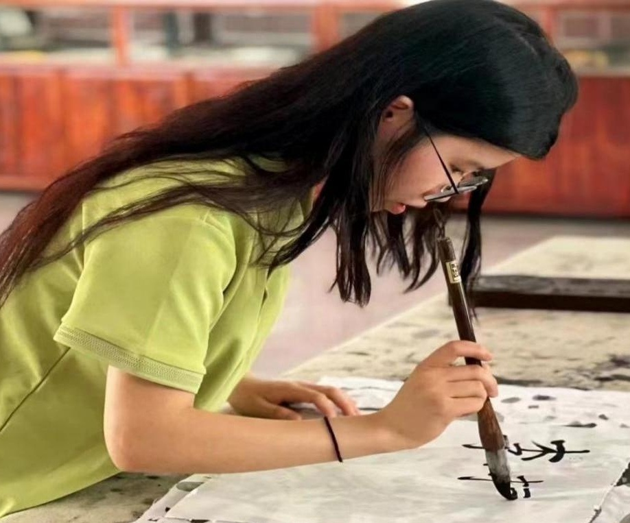 7月15日,在宣城市績溪縣中國徽墨文化園,隊員們首次目睹了琳瑯滿目的徽墨。制作園區,資深徽墨講解師王師傅向隊員們詳細闡述了徽墨悠久的發展史,千百年來,制墨以松煙為主;后為留存松樹資源,保護自然環境,創新發展了油煙和漆煙。王師傅還帶領團隊成員詳細了解了徽墨繁復的制作流程,包括“點煙、熬膠、和料、杵搗、成型、晾墨、銼邊、描金”等步驟,在這些環節誕生了徽墨的第二個創新之處-墨面的雕刻設計,各類歷史畫作、名家典故不斷化為墨面的雕刻內容。這次創新煥發了徽墨的新活力,鑄就其新輝煌。