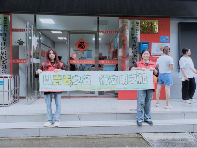 在實踐團成員各自放回家鄉后,于8月21日,在柳州市柳江區拉堡鎮鵬飛社區以及重慶市武隆區和順鎮彈子村開展文明旅游宣傳。