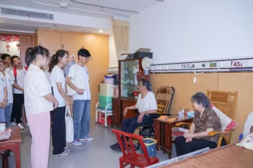 圖為實(shí)踐團(tuán)成員參觀特色養(yǎng)老房間。王野 供圖