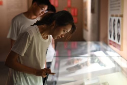 圖為實(shí)踐團(tuán)成員參觀廣德非物質(zhì)文化遺產(chǎn)展示館。王野 供圖
