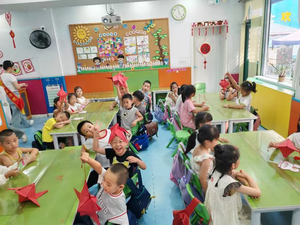 圖為折紙活動結束后,小朋友們與自己的勞動成果合影。中國青年網通訊員 鹿璐 攝