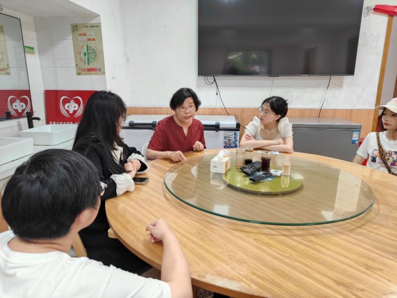 圖為幸福食堂(北門店)負責人竺女士熱心地向調研團隊成員們講解“幸福食堂”的起源、發展和現狀