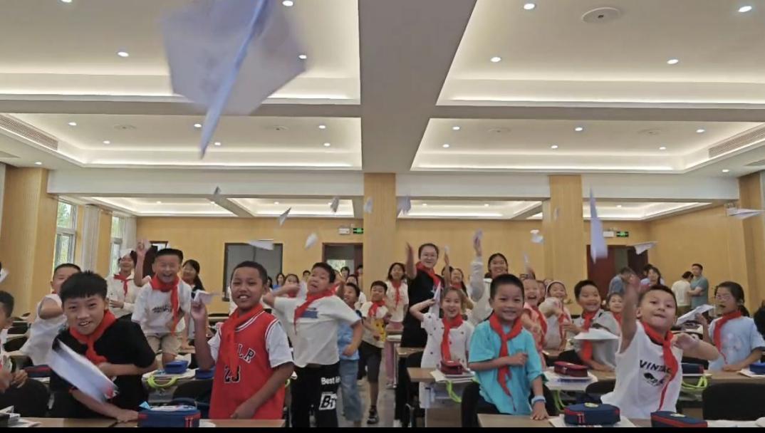 圖為2024年7月 大坪社區(qū) 小朋友們制作放飛紙飛機(jī)