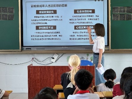 活動結束后,實踐隊分赴沙土鎮初級中學、第三小學、第一小學和赫章縣達依鄉茶園小學等地,與關心下一代委員會的工作人員進行了訪談,初步掌握學校的法制宣傳情況與學生的法治素養。隨后為在校學生開展了生動具體的普法宣傳,通過心理分析、法律講解和實例演繹,幫助同學們深刻理解違法行為的后果以及法律對青少年的保護作用。