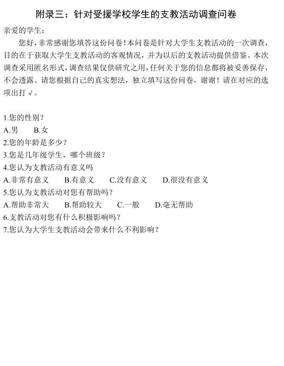 3.支教內容設置不合理大學生支教前策劃,雖然會根據預先規劃的課程展開,但是課程都是由支教大學生設置的,他們會上網搜集比較有吸引力的潮流內容。這樣的內容能一定程度上激發學生學習的興趣,但也使得課堂秩序混亂,學生上課隨意發揮想象、注意力不集中等不好的習慣。