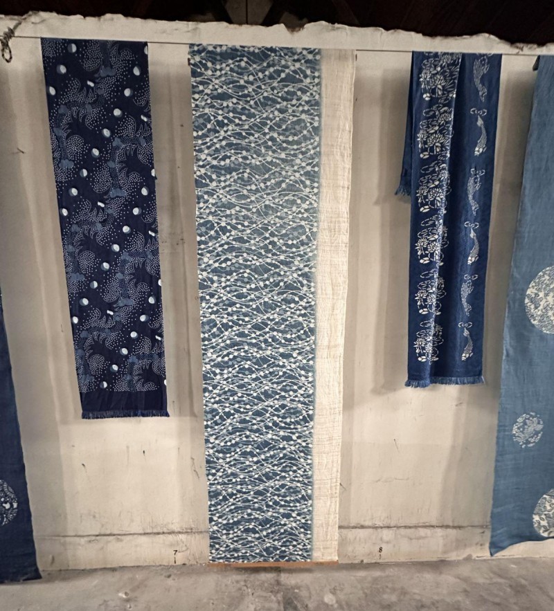 非遺傳承人倪沈健老師給團隊成員們詳細了解了藍印花布的制作工藝。從挑選優質棉布、設計圖案,到刻版、刮漿、染色,再到晾曬、刮白,每一步都凝聚著工匠們的心血與智慧。