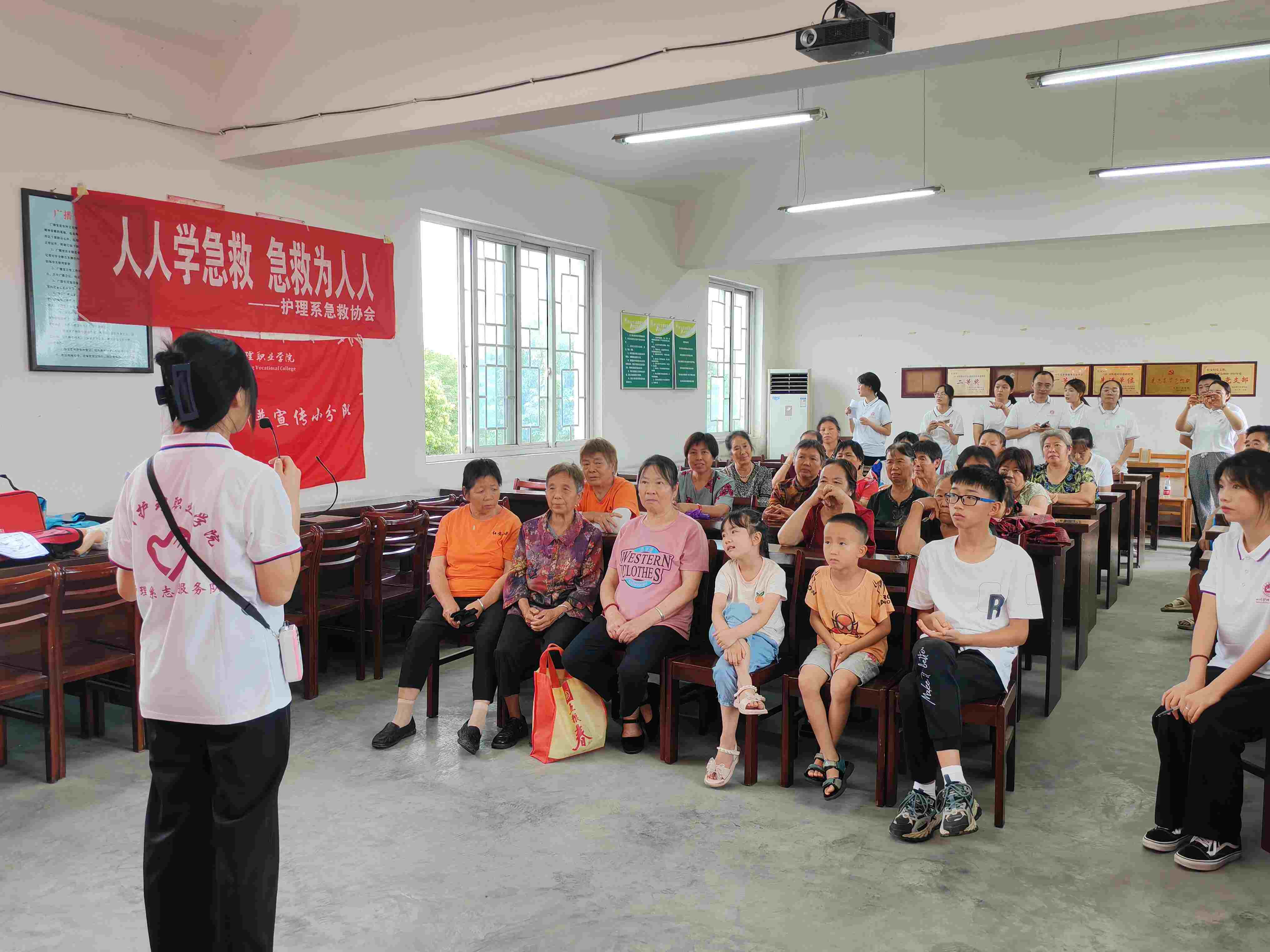7月8日,志愿服務隊在紅安村黨群服務中心開展了健康科普以及急救培訓活動。在健康知識科普活動中,志愿者們向村民們進行夏季防溺水、食品安全、常見疾病預防和治療等方面科普;顒釉O置了互動問答環節,居民們積極提問,志愿者耐心解答,現場氣氛熱烈,活動加深了村民們對相關健康知識的了解和理解。