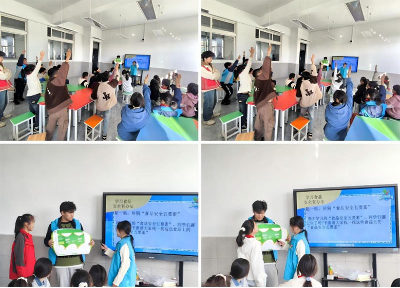 藏在小零食里的大安全 2024年11月28日星期四,湖北工程職業學院管道保護宣傳志愿服務小隊于下午兩點在黃金山實驗小學開展教學志愿活動。韋思羽擔任《藏在小零食里的大安全》課程老師,本次課程旨在通過系統的教學與豐富的活動,加深學生們對零食的進一步認識,并且通過現場演示與教學,讓學生們自己嘗試制作“小飲料”,同時學習了在日常生活中挑選零食時應考慮的安全要點。此外,老師還安排了互動提問環節,同學們踴躍參與,課堂氣氛活躍,回答問題準確無誤,老師及時給予了鼓勵。課程接近尾聲時,志愿者老師引導同學們復習了本節課的重點內容,并再次強調了購買零食時的注意事項。