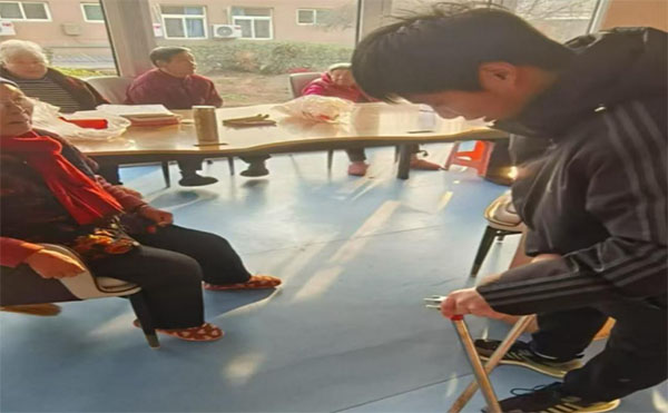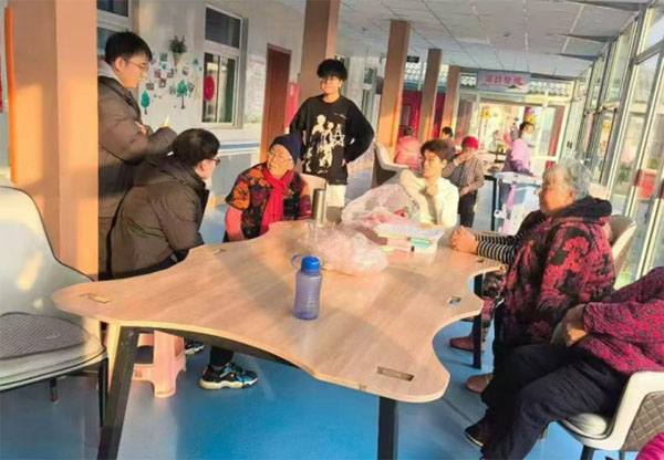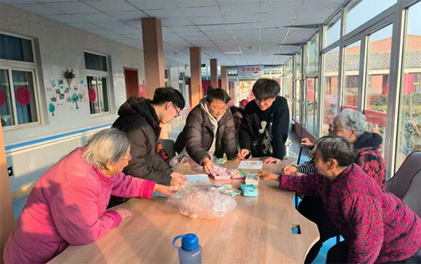 在這段時間里,實踐團的成員們積極參與到老人們的日常生活中,與他們交流互動。寒冷的冬季里,老人們的笑容成為了這場活動中最溫暖的回報。活動現場,團員們與老人們圍坐在一起,分享生活中的點滴,幫助他們消除孤單和寂寞。