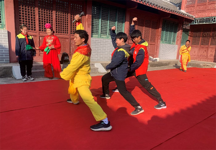圖2花鼓燈非遺傳承人與孩子們一同練習舞蹈