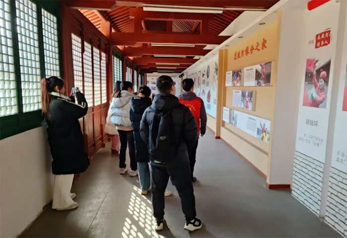 春泥隊一進入馮嘴村,就仿佛置身于花鼓燈的藝術海洋。他們首先來到村里的文化廣場,這里是花鼓燈表演的重要場所。當地的花鼓燈藝人早已等候多時,熱情地迎接這些年輕的文化傳承者。藝人們身著鮮艷的傳統服飾,精神抖擻地展示著花鼓燈的經典動作和表演技巧。從那輕盈的“三步一顛”舞步,到變化多端的扇花舞動,再到激昂有力的鑼鼓節奏,每一個細節都展現出花鼓燈文化的深厚底蘊。接著在當地人的帶領下春泥隊參觀了中國花鼓燈傳習所,這里陳列著大量與花鼓燈相關的珍貴文物和資料。一幅幅老照片記錄了花鼓燈的文化發展歷程,從田間地頭的自娛自樂,到登上國內外的大舞臺,無不彰顯著花鼓燈獨特的藝術魅力。周恩來總理曾把花鼓燈譽為“東方芭蕾”。春泥隊還與村民們也進行了親切交流,了解花鼓燈在當地的傳承現狀以及面臨的困難和挑戰。村民們紛紛表示,雖然他們熱愛花鼓燈,但隨著現代社會的發展,年輕人大多外出務工,花鼓燈的傳承面臨著后繼無人的困境。隊員們深感責任重大,他們向村民們宣傳花鼓燈文化的重要價值,強調保護和傳承這一非遺文化的緊迫性,并鼓勵村民們積極培養年輕一代對花鼓燈的興趣,讓這一古老的藝術在馮嘴村繼續煥發生機與活力。