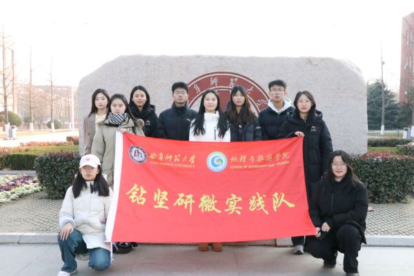 圖為鉆堅研微實踐隊于校徽石前合影。夏英語 供圖