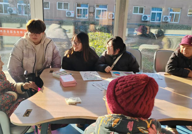 在其中的一次活動中,團隊成員們與老人們圍坐在一起,分享彼此的生活經(jīng)驗。每個老人臉上都洋溢著幸福的笑容,大家討論著年輕時的趣事,仿佛時間倒流,帶回了青春的記憶。團隊成員們細心地陪伴老人,讓他們在寒冷的冬季感受到溫暖與陪伴,消除了孤單和寂寞。